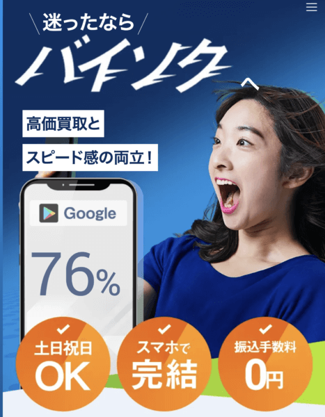 | 買取サファリ | Appleギフト:初回利用 3,000〜79%、10,000〜79%(2回目:79%) | Apple、Amazon、Google | ||