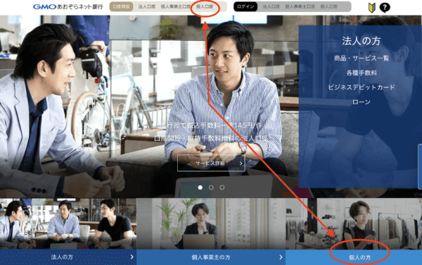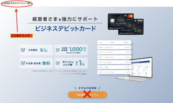 左上の「GMOあおぞらネット銀行」をクリックしましょう。