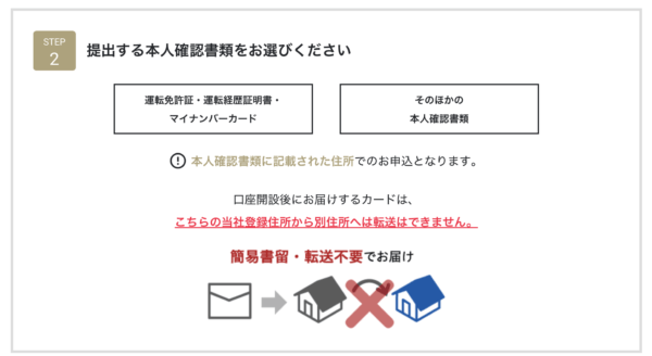 途中、身分証明書等の本人確認がありますので、スマホの写真で撮って送りましょう。
