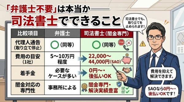 SAO司法書士法人のような闇金専門の司法書士の方が、闇金業者への対応実績が圧倒的に多く、解決が速いケースも多いです。