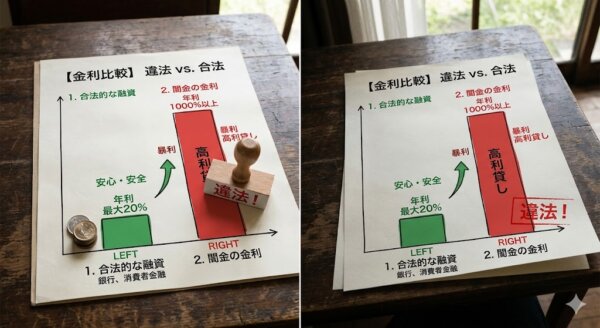 - 闇金の金利は法律の上限(年20%)を大幅に超えた完全な違法行為