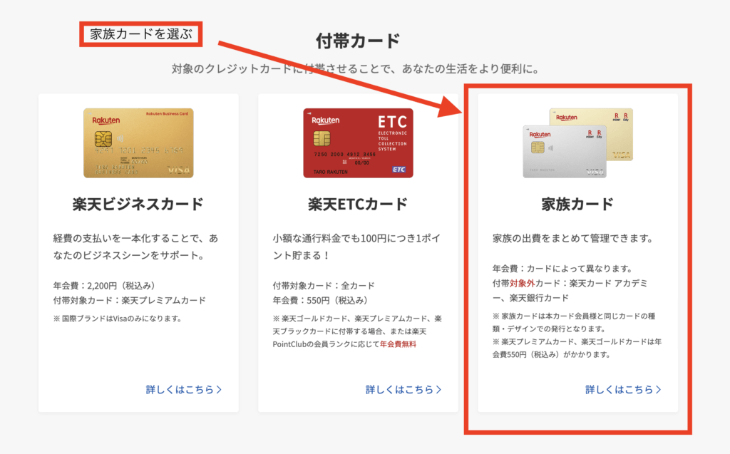 楽天カードでは家族カードを発行することが可能です。