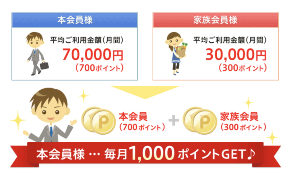 - 家族カードのポイントは契約者に進呈される